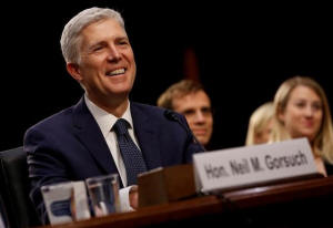 U.S. Supreme Court nominee judge Neil Gorsuch testifies during the