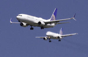 A United Airlines Boeing 737-800 and United Airlines A320 Airbus on