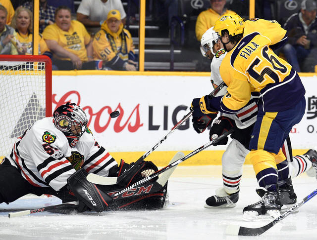 Fiala's OT goal gives Preds 3-0 lead over Blackhawks