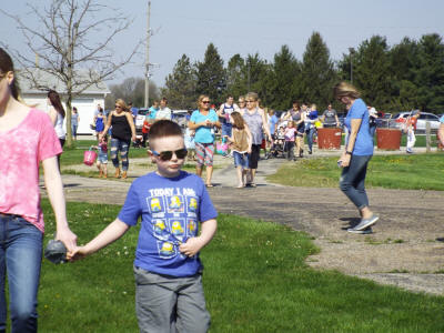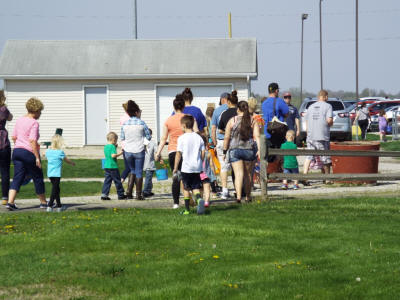 area with older helpers in tow grabbing up and enjoying the bounty,