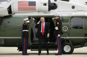 to board Air Force One as he departs Milwaukee, Wisconsin, U.S.,