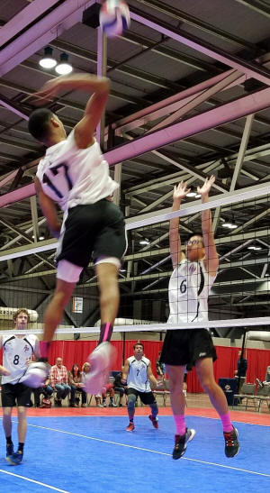 outside hitter Corey Poindexter, helped Lincoln take set one 25-22.