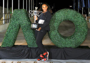 Serena Williams of the U.S. poses with the Women's singles trophy