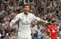 Real Madrid's Cristiano Ronaldo celebrates scoring their third