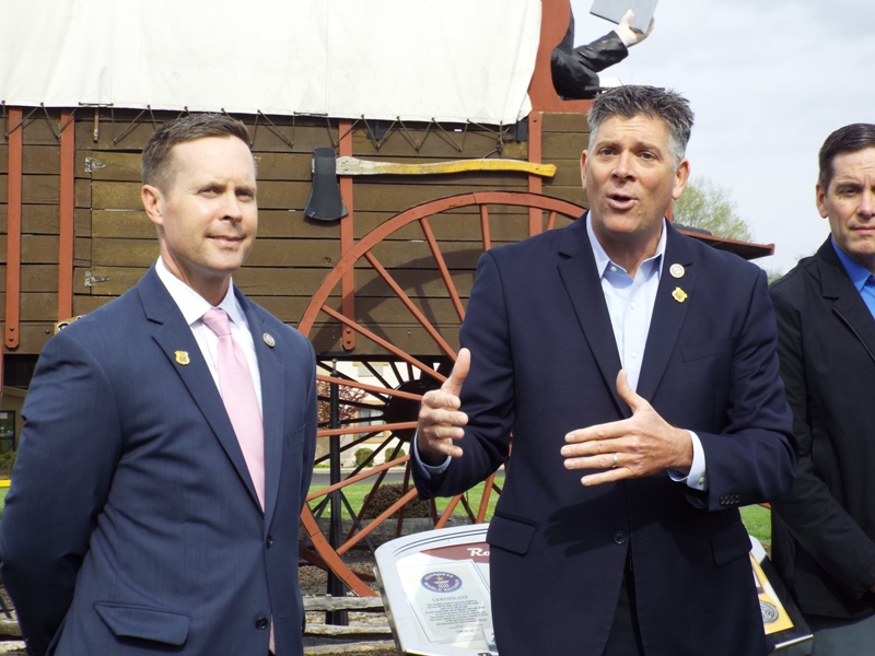 The three were joined in Lincoln in front of the Railsplitter Covered Wagon by both Lincoln Mayor Marty Neitzel and incoming Mayor Seth Goodman.