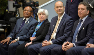 Federal Reserve Board Chairperson Janet Yellen (2nd, L) joins (L-R)