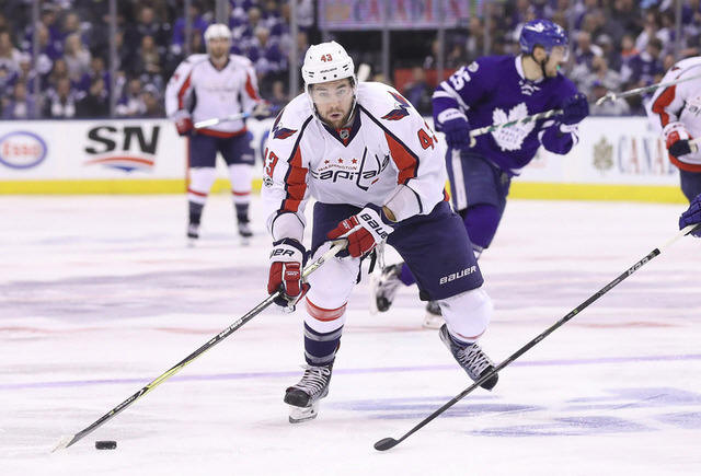 Capitals right wing Tom Wilson (43) skates with the puck against