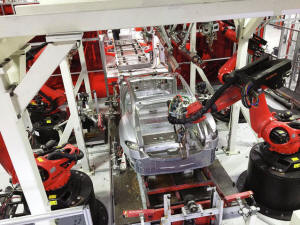Tesla vehicles are being assembled by robots at Tesla Motors Inc