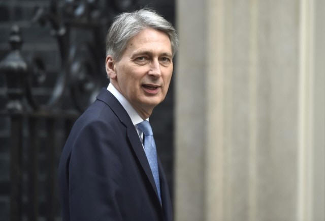 Britain's Chancellor of the Exchequer Philip Hammond arrives in