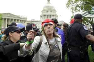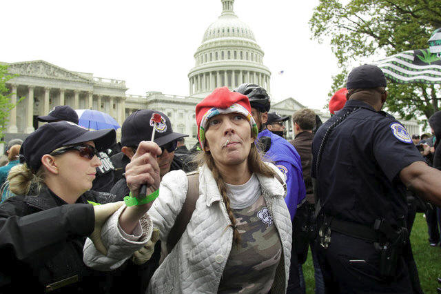 Capitol Hill police officers arrest protesters smoking marijuana on