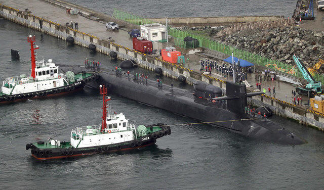 The port call by the USS Michigan came as a U.S. aircraft carrier strike