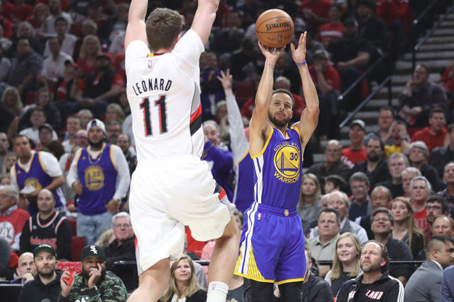Warriors guard Stephen Curry (30) shoots the ball over Portland