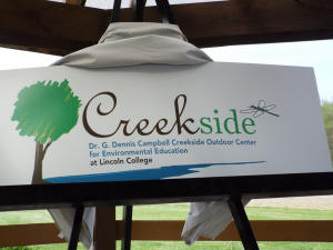 As the day began, the focus fell on Dr. G. Dennis Campbell, as the center was renamed in his honor. Creekside will now be known as the Dr. G. Dennis Campbell Creekside Outdoor Center for Environmental Education at Lincoln College. Though it is expected many will still refer to the area north of Lincoln along Sugar Creek simply as “Creekside.”