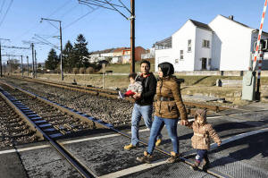 Syrian Mohamed al-Khalaf, (2nd L) carries daughter Maya alongside