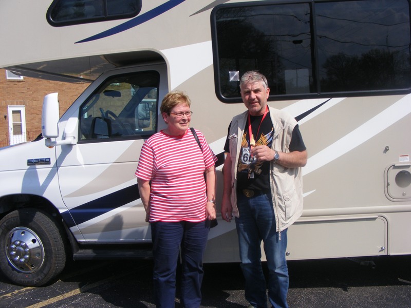 The Henning's recently celebrated Jensen's 66th birthday. Having retired from farming in Finland, and turning their dairy farm over to their son, the couple is now enjoying travel, with Route 66 being among their first adventures in America. The group of RV-travelers plans to spend four weeks traveling to Los Angeles, California making stops at as many Route 66 attractions as possible.