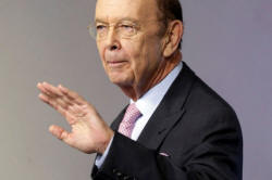 U.S. Commerce Secretary Wilbur Ross waves after speaking about new
