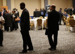 room of prospective employers at a career fair in New York City,