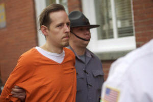 officers after an arraignment in Milford, Pennsylvania, October 31,