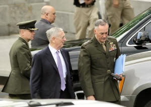 General Joseph Dunford (R) depart after briefing members of the U.S.