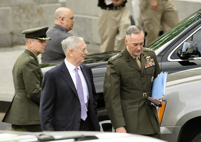 U.S. Defense Secretary James Mattis (C) and Joint Chiefs Chairman
