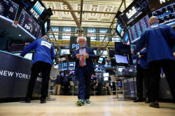 Traders work on the floor of the New York Stock Exchange (NYSE) in