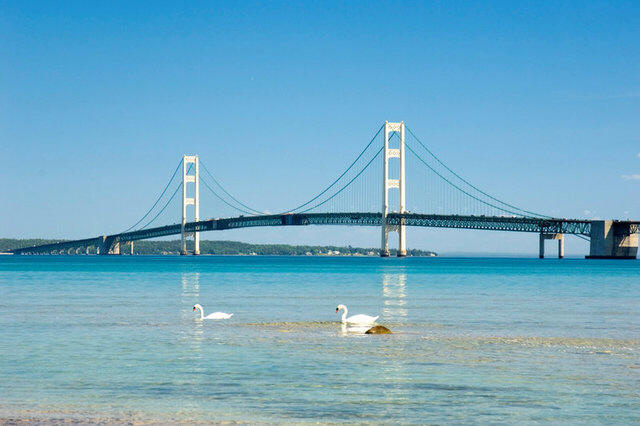 Mackinac which connect two of the Great Lakes, Lake Michigan and