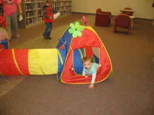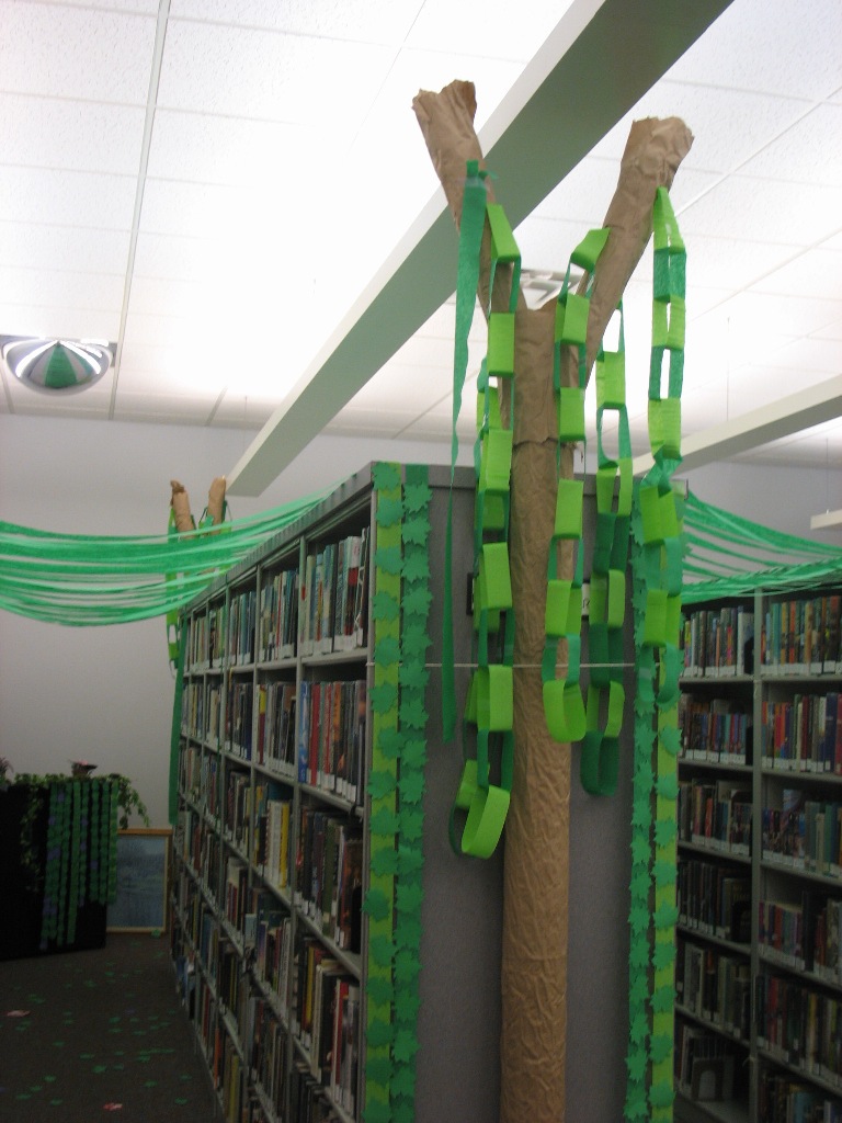 An enchanted forest provided patrons with a place to read and relax.