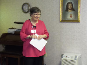 At the luncheon, after enjoying a meal provided by the staff at St. Clara’s, guests were invited to play a game. Johnson led the way, asking each one to write down a numerical answer to the questions she posed. Questions included scoring points for the number of rings being worn, the number of buttons, number of children, and number of years on this earth, just to name a few. In the end two volunteers tied for first place with a total that exceeded 150 points.