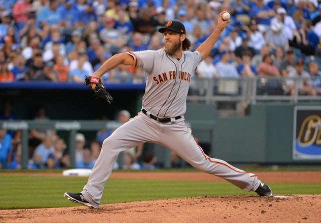 Giants starting pitcher Madison Bumgarner (40) delivers a pitch in