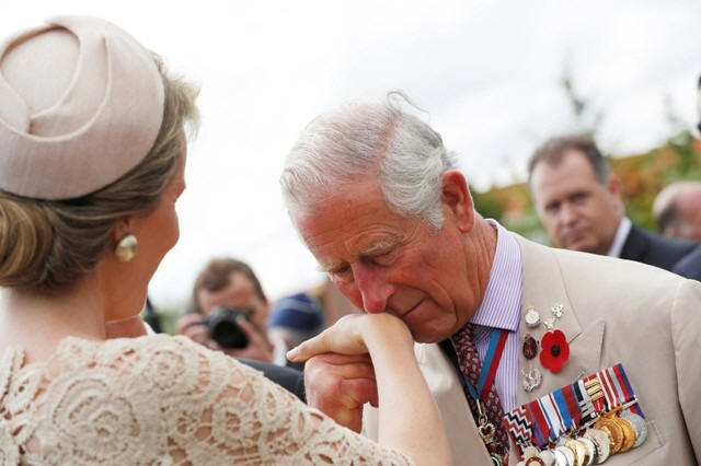 Britain's Prince Charles greets