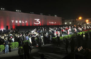 Tesla introduces Model 3 cars off the Fremont factory's production
