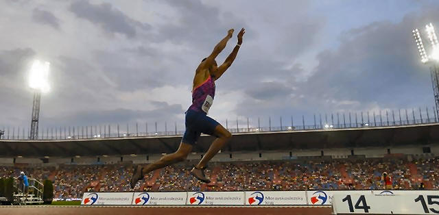 U.S. team mate Will Claye and Cuban Pedro Pablo Pichardo, who