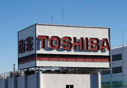 Toshiba's logo is seen at an industrial area in Kawasaki, Japan,