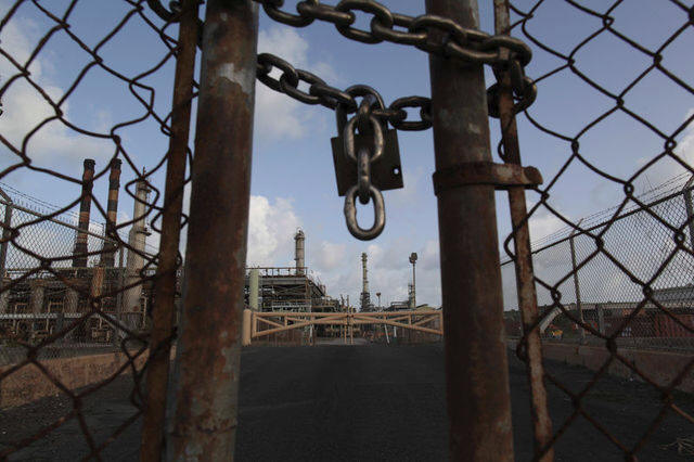 The installations of the Hovensa petroleum refinery are seen behind