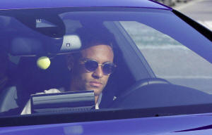 Brazilian soccer player Neymar drives to arrive to Joan Gamper