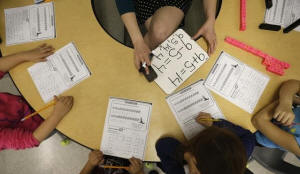 Teacher Jenna Rosenberg speaks to her first grade class at Walsh