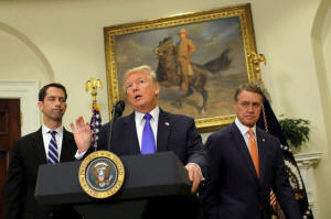 accompanied by Senator Tom Cotton and Senator David Perdue.