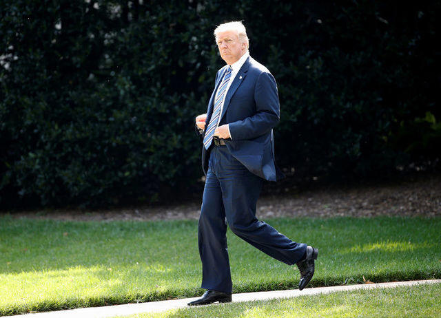 U.S. President Donald Trump walks to Marine One as he departs for a