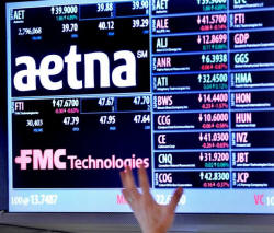 Shares of Aetna rose 2.5 percent to $158.54, helped by stronger