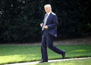 President Donald Trump walks to Marine One as he departs for a day
