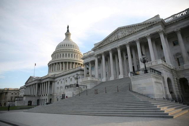 The U.S. Capitol Building is seen shortly before sunset in