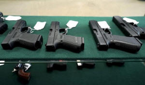 A selection of Glock pistols are seen for sale at the Pony Express