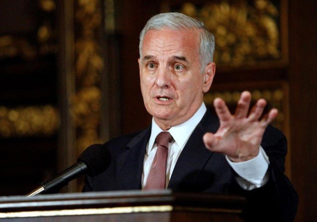 Minnesota Gov. Mark Dayton speaks to media in St. Paul, Minnesota,