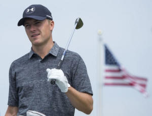 Jordan Spieth on the driving range during the final round of the WGC