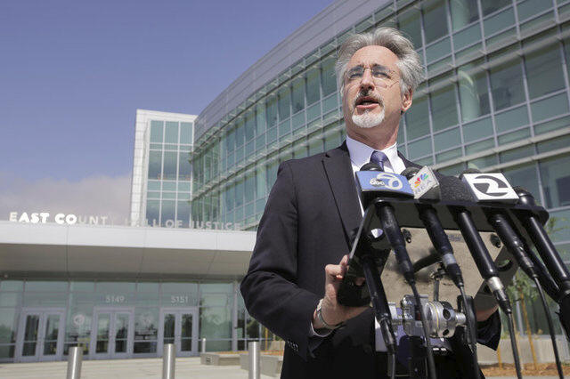 Attorney Ken Wine speaks to the press outside the Alameda County