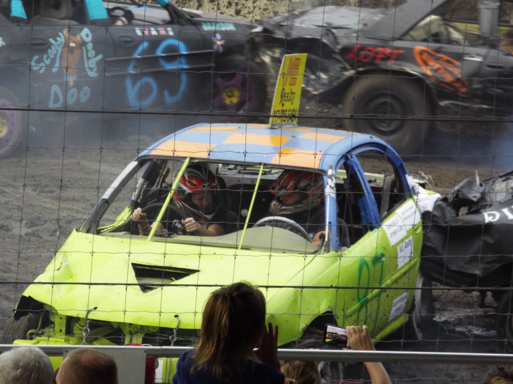 This heat also featured some strong drivers, men and women alike, resulting in several minutes of crashing and banging before a winner rose out of the smoke and debris.