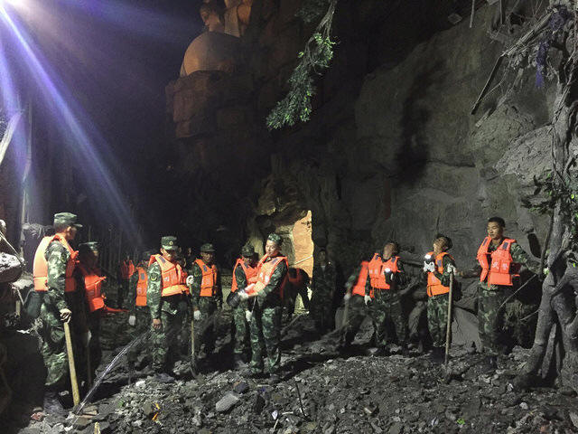 Chinese paramilitary police search for survivors after an earthquake