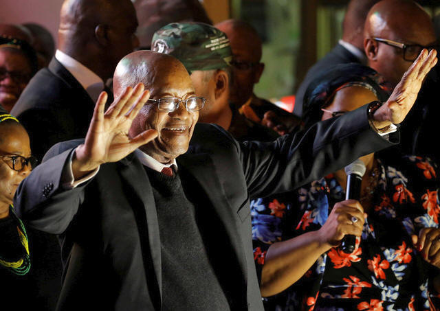 South Africa's President Jacob Zuma celebrates with his supporters