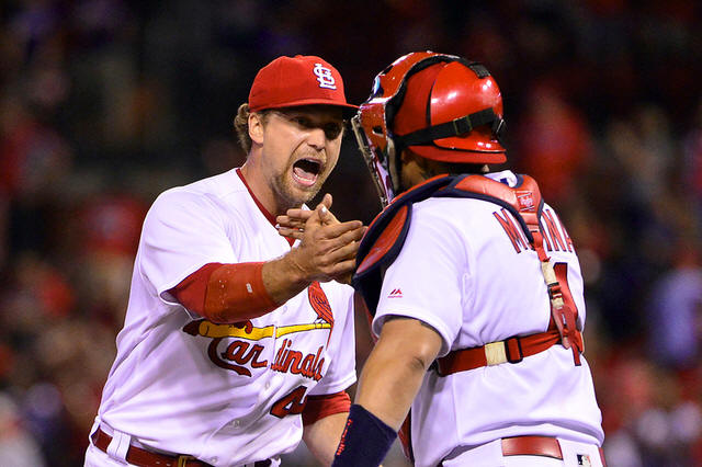 Cardinals relief pitcher Trevor Rosenthal (44) celebrates with