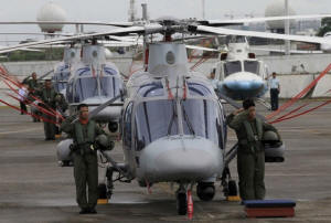 AgustaWestland AW109E helicopters during a ceremony at the Villamor